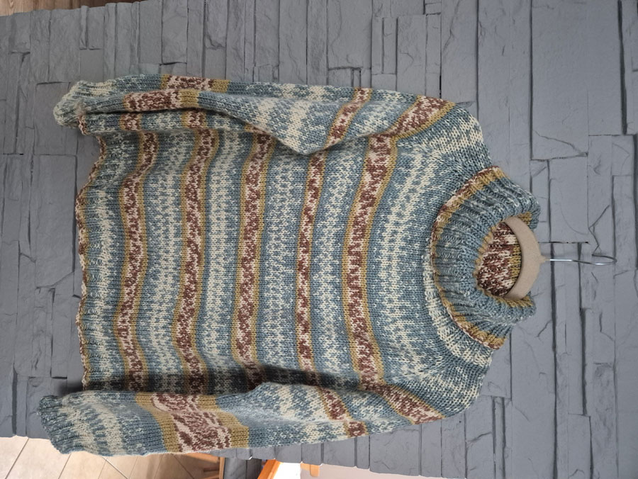 Chciałabym zaprezentować niebiesko zielony sweter, który powstał z włóczki Jawoll Magic 078.