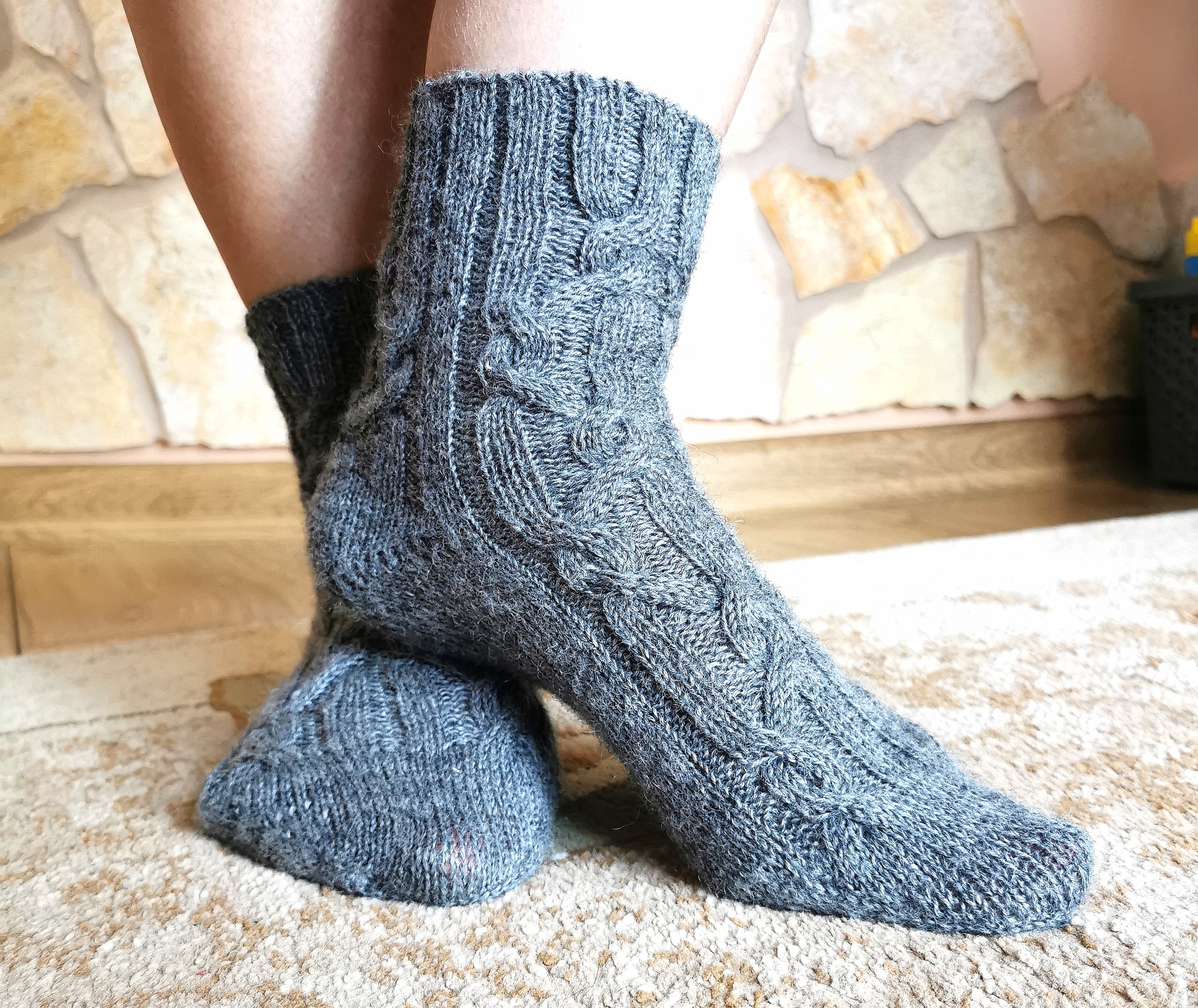 Chusta wykonana z 2 motków włóczki Lang Jawoll Magic Degrade z kolorów nr 151 i 159 na drutach nr 4.