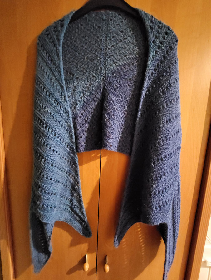 Sweterek z włóczki Yara gotowy. Dzierganie drugiego rękawa przebiegło bez problemów, dzianina została namoczona i ułożona do wyschnięcia. Następnie przyszedł cz ...